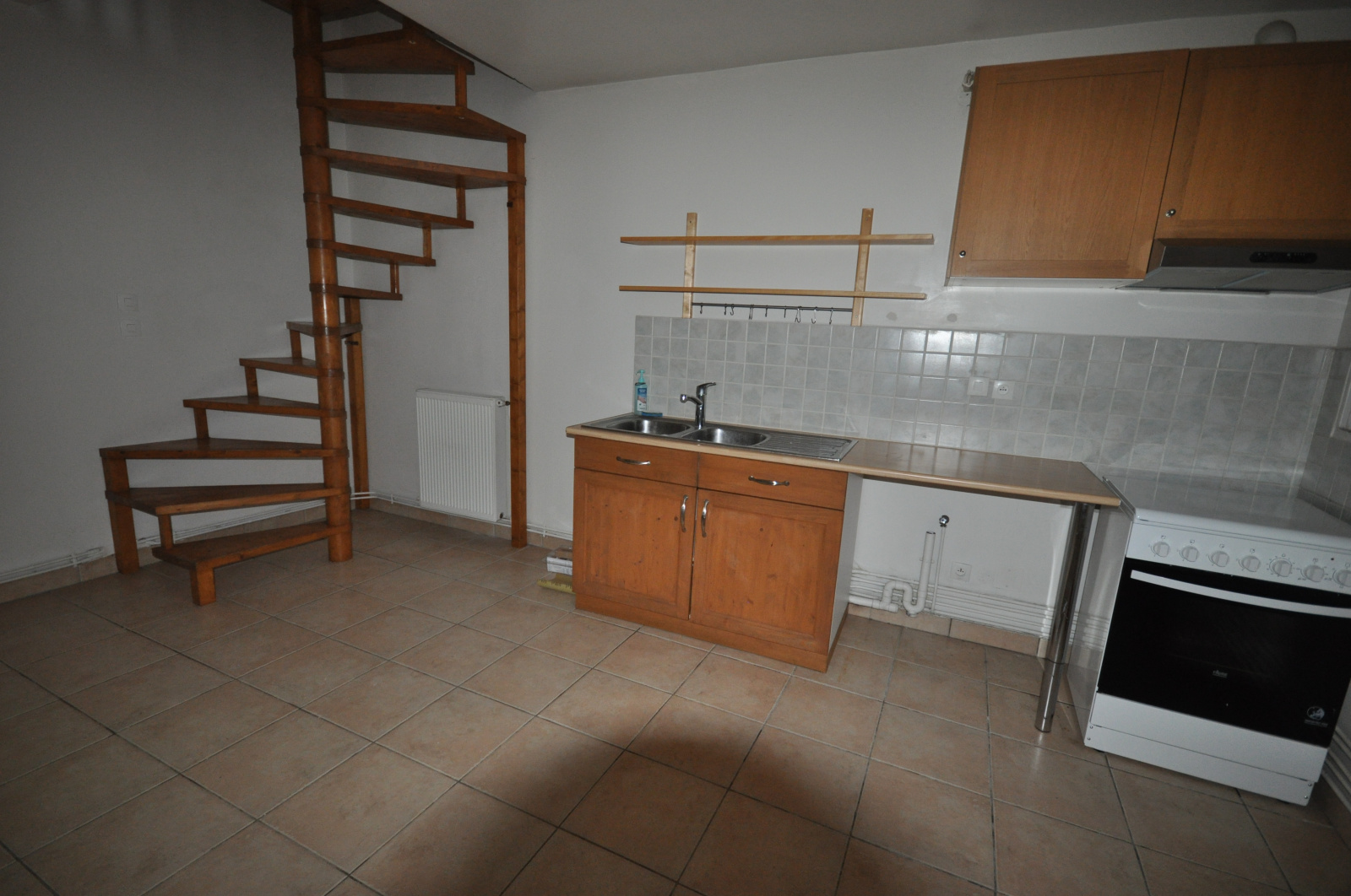 2 Pièces en duplex - Séjour avec cuisine aménagée - A l'étage : Palier - chambre - Salle de douche - WC - Chauffage et eau individuels - 1 Place de parking dans la cour.