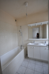2 Pièces en duplex - RDC : Entrée avec placard - Séjour - Cuisine aménagée et équipée d'un plaque électrique - A l'étage : palier - Grande chambre (16 m²) avec placard - Salle de bains - WC - Chauffage électrique individuel - Cave - 2 places de stationnement.