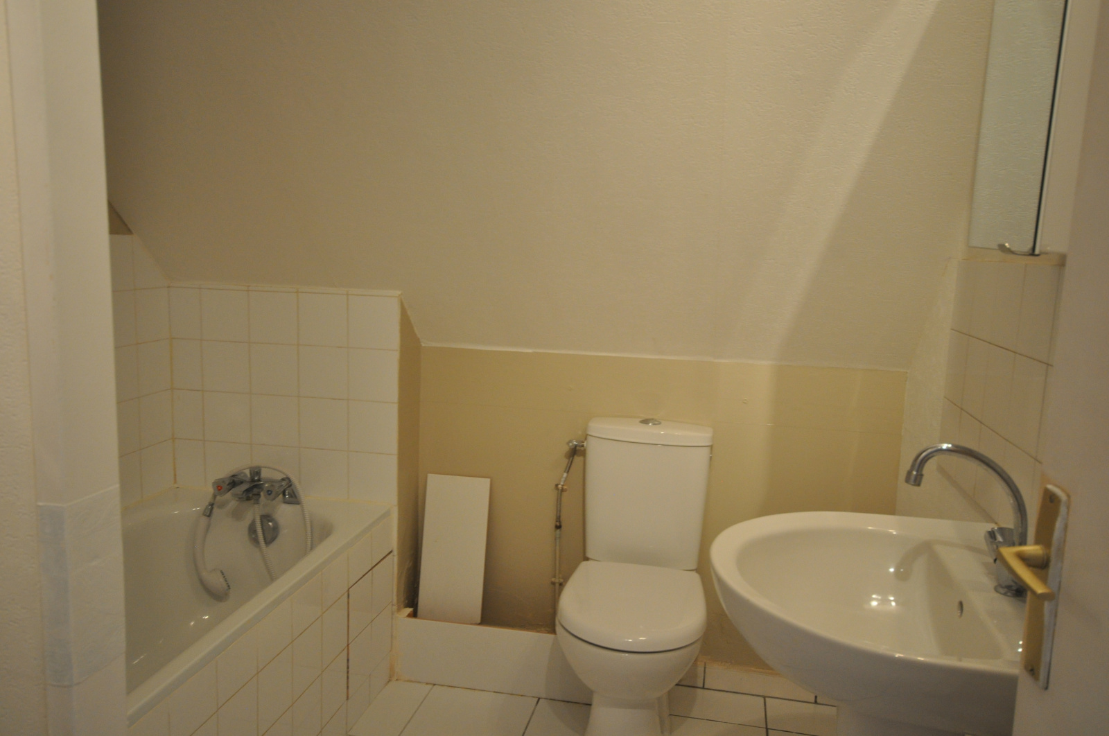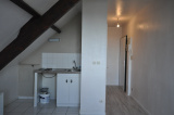 Studio au 2ème et dernier étage d'un petit immeuble - Entrée avec placard - Pièce principale avec coin kitchenette équipée de plaques - Salle de bains avec WC - Chauffage électrique individuel - Cave - 1 place de parking. Libre le 12/12/2025.
