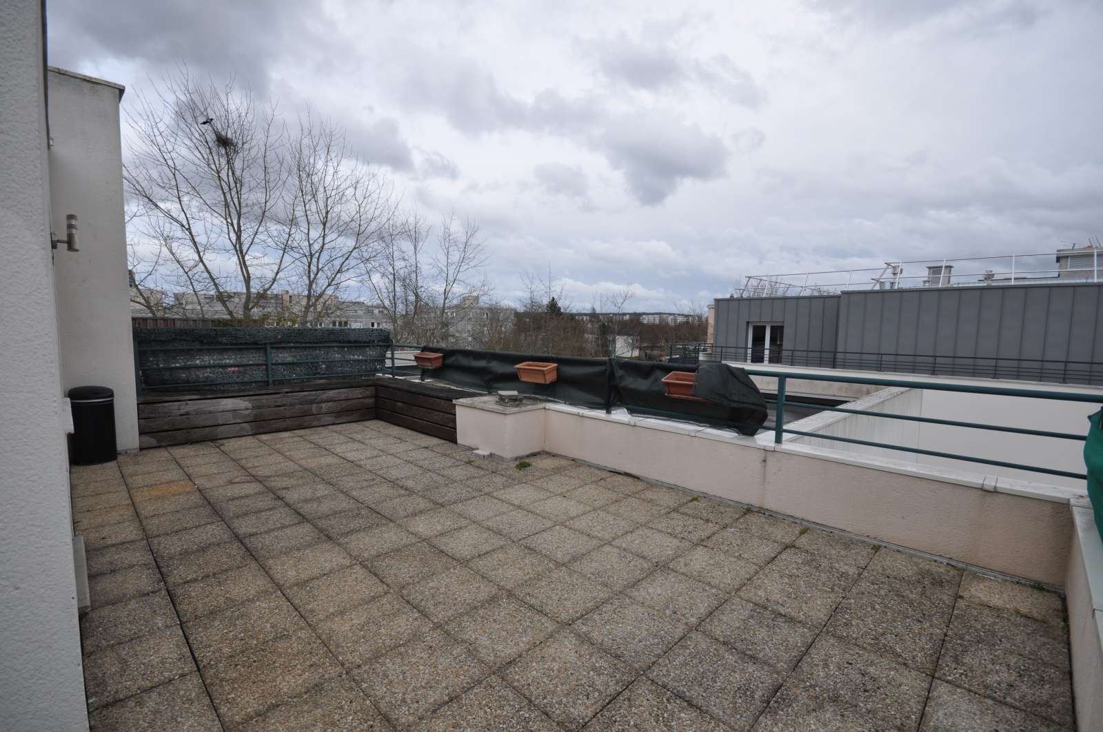 Spacieux studio au 4ème étage avec ascenseur - Entrée - Pièce principale avec placard - Cuisine aménagée et équipée de plaques- Salle de bains avec WC - Terrasse de 27 m² - Chauffage au gaz individuel - Cave.