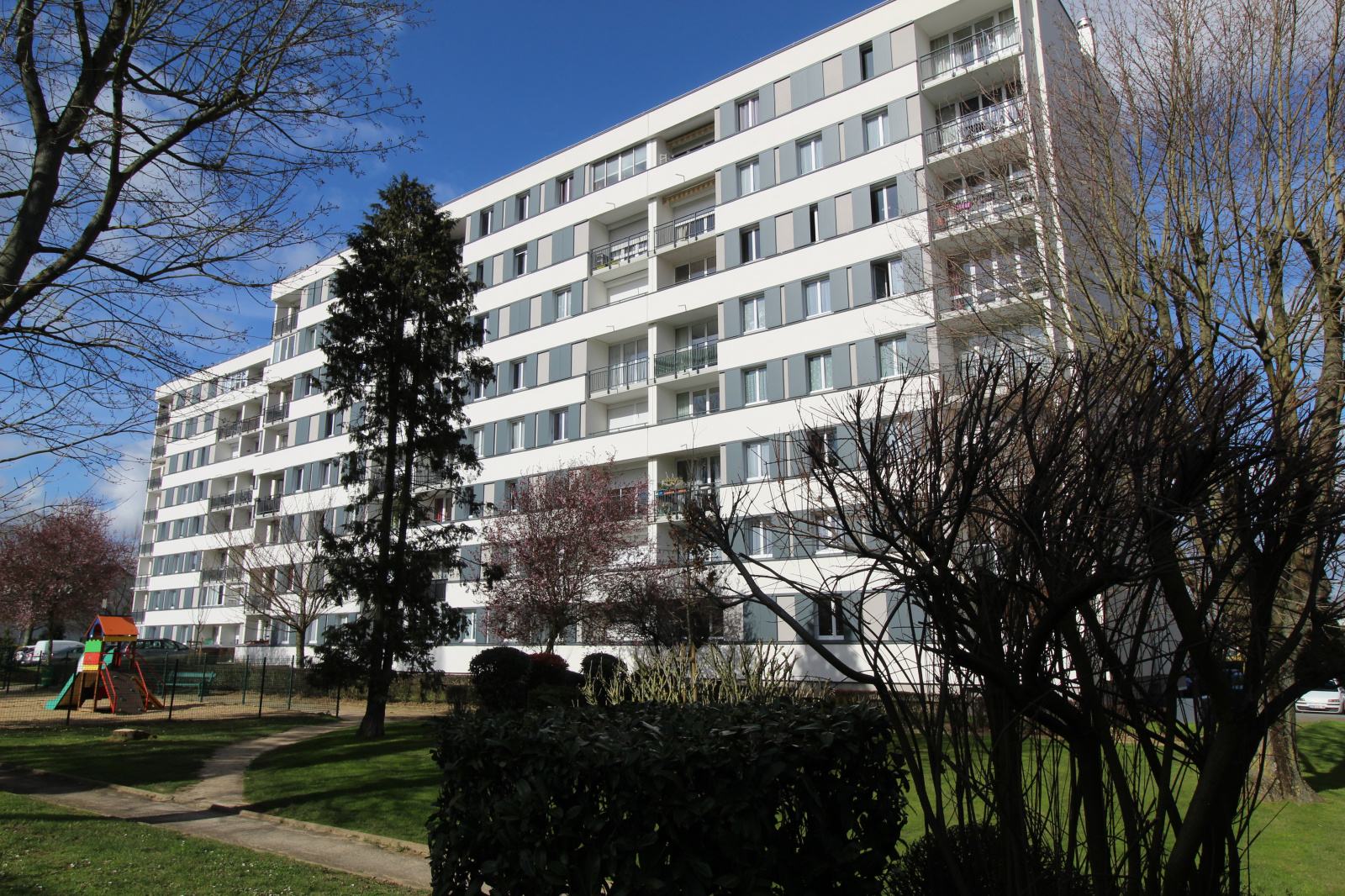 3 pièces au 5ème étage avec ascenseur - Entrée avec placard - Cuisine aménagée et équipée (four, plaques et hotte) - Cellier - Séjour avec balcon - 2 chambres - Salle de bains - WC - Chauffage collectif inclus dans les charges - Cave - 1 place de parking.