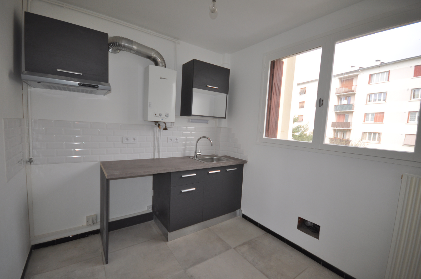 4 Pièces au 1er étage Résidence Chemin des Vignes - Entrée - Cuisine aménagée (avec hotte) + cellier attenant - Séjour double avec balcon - Dégagement - 2 chambres dont 1 avec grand placard - Salle de douche - WC - Chauffage collectif compris dans les charges - 1 cave - 1 place de parking.