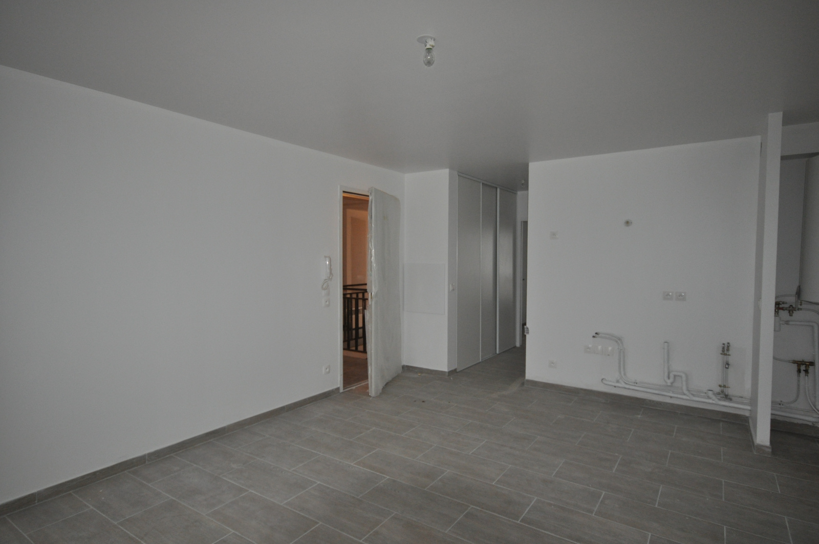 2 Pièces au deuxième étage d'un petit immeuble récent - Entrée avec placard - Séjour - Cuisine américaine aménagée et équipée (four, plaques et hotte) - Chambre - Salle de douche avec WC - Chauffage électrique individuel - 2 places de stationnement dans parking fermé.