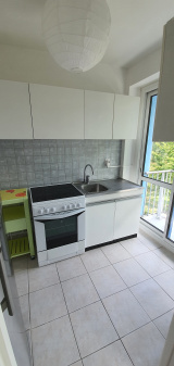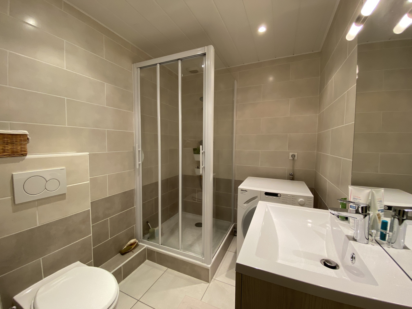 Studio au 2ème étage - Entrée avec placard - Pièce principale avec balcon - Cuisine aménagée et équipée (cuisinière vitro, réfrigérateur, lave-linge) - Salle de douche avec WC - Chauffage et eau collectifs compris dans les charges - Cave - 1 place de parking.